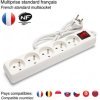 Bloc 5 prises 16A (2P+T). Câble: 1 mètre, H05VV-F 3G1.0mm². Bloc multiprise équipé d'une protection enfants et d'un interrupteur lumineux. Certifié NF. Puissance Max 3680W sous 230V. Pratique pour couvrir les besoins domestiques en raccordements électriques.