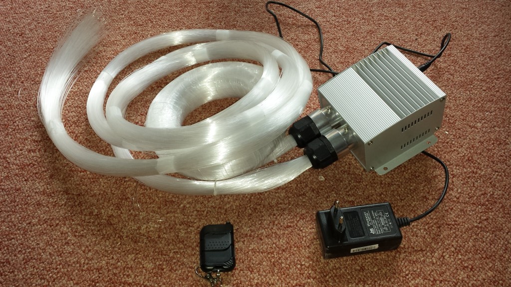Pour réaliser mon projet, j’ai donc commandé un kit complet ciel étoilé sur www.moncieletoile.com pour la modique somme de 260€. Le kit que j’ai choisi comprend 800 fibres de 3 mètres et est garantie 5 ans.