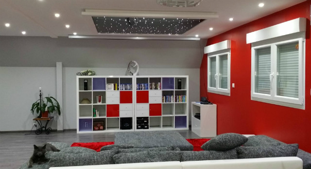 Mise en garde : Le kit Ciel Etoilé n’éclaire pas une pièce complète. Il donnera un éclairage type « clair de lune ». Ce type d’éclairage ne sera pas faite pour travailler ou lire, mais est bien un éclairage d’ambiance tamisée, de décoration. Nous pouvons installer un ciel étoilé en fibre optique et générateur LED peut s’installer dans un plafond existant, que si le plafond est accessible par le dessus du plafond, pour percer et enfiler les fibres. Il s’installe de préférence lors de la pose d’un faux plafond ou d’une cloison.