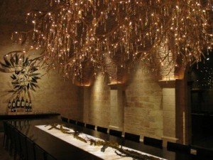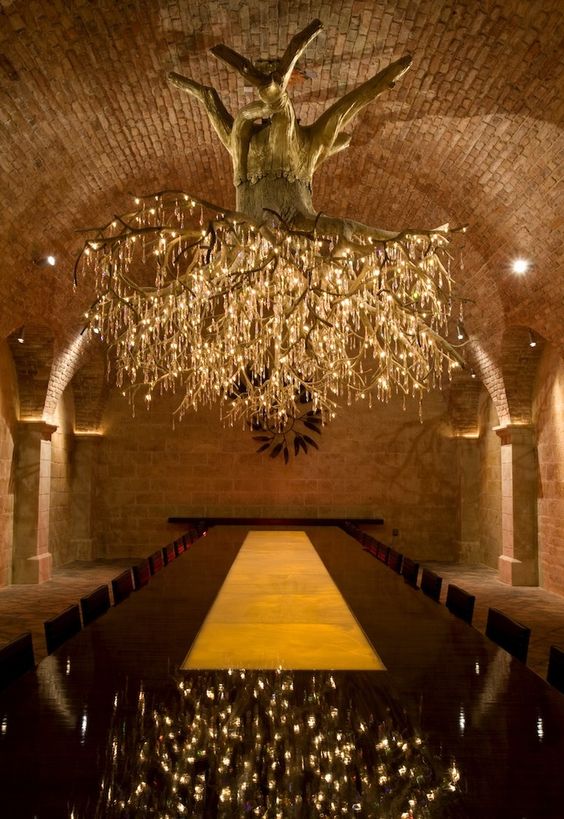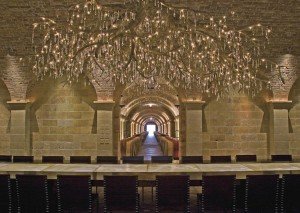 Ce lustre extraordinaire installée dans une cave réputée californienne est la création de Donald Lipski avec la complicité de Jonquil LeMaster. Donald Lipski est un designer né à Chicago en 1947. Jonquil LeMaster crée depuis une trentaine d’années.